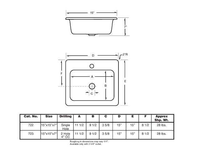 Finish: WhiteModel 722 CECO Drop-In Cast Iron Bar Sink 15" x 15" x 7" Single Hole
