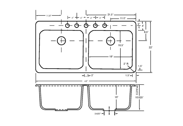 CECO Model 743-4 Hole Drop-In Kitchen Cast Iron Sink 43