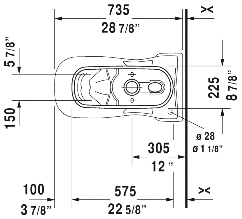 • Elongated 1.28 GPF Toilet with 12" Rough In